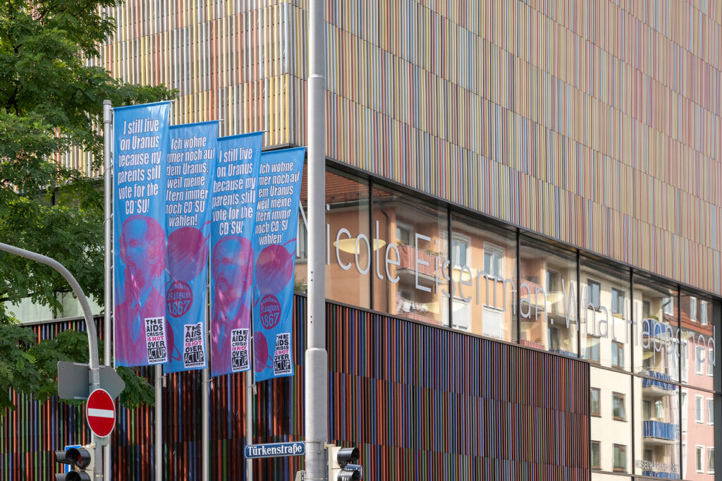 Die Fahnen hängen noch bis zum 15. März 2024 vor dem Museum Brandhorst.